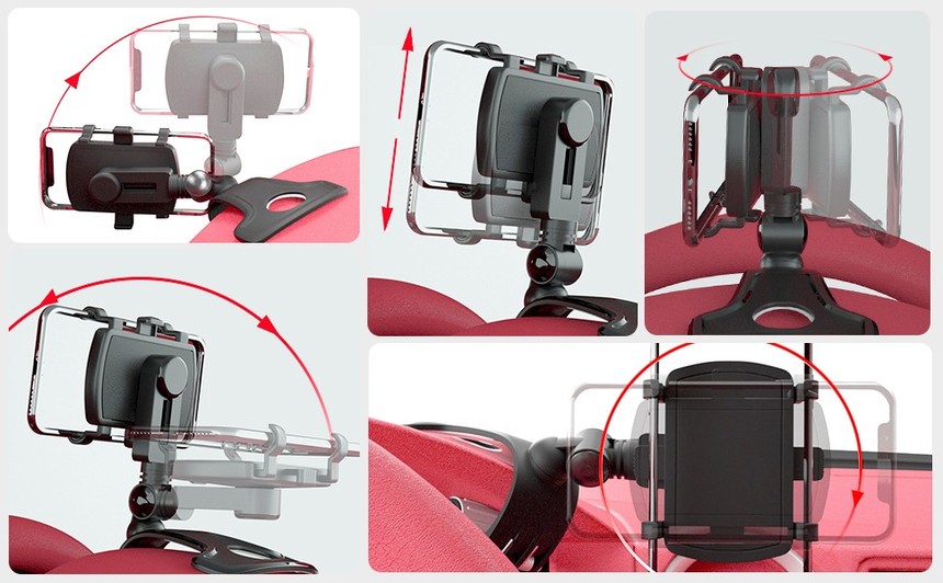 【360° Rotation & 180° Folded】Cell Phone Mount includes 3 360° rotating shafts & 1 180° folding shaft, the angle can be adjusted at will to provide you with the best viewing angle. The telescopic pole design can ensure safe driving without blocking the driver's sight.